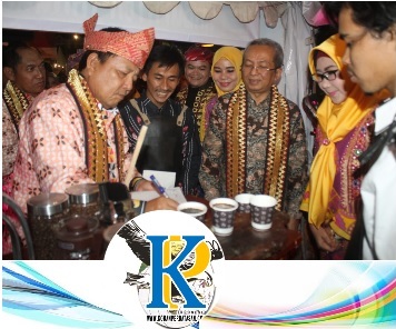 BANDAR LAMPUNG (KP),- Gubernur Provinsi Lampung, Arinal Djunaidi menikmati sajian kopi di Stan Kabupatan Tanggamus, pada Festival Kopi Lampung 2019 di Elephant Park, Bandar Lampung, Rabu 06 November 2019.