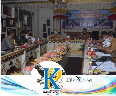 KOTA AGUNG (KP),-Bupati Hj. Dewi Handajani, selaku Ketua Tim Kewaspadaan Dini Kabupaten Tanggamus menggelar rapat konsolidasi bersama pengurus dan jajaran Kewaspadaan Dini di Ruang Rapat Bupati Tanggamus, Selasa, 13 Oktober 2020.