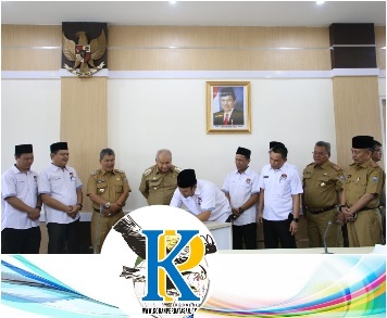 BATURAJA (KP),- Bupati OKU Drs. H. Kuryana Azis menandatangani Naskah Perjanjian Hibah Daerah (NPHD) bersama KPU, di Ruang Rapat Bina Praja Pemkab OKU Senin, 14 Oktober 2019.