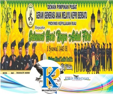 Dewan Pimpinan Pusat (DPP) GERAM (Generasi Anak Melayu) Kepri Bersatu Provinsi Kepulauan Riau Mengucapkan Selamat Hari Raya Idul Fitri 1443 Hijriyah 2022 Masehi Minal Aidin Wal Faizin Mohon Maaf Lahir dan Batin.