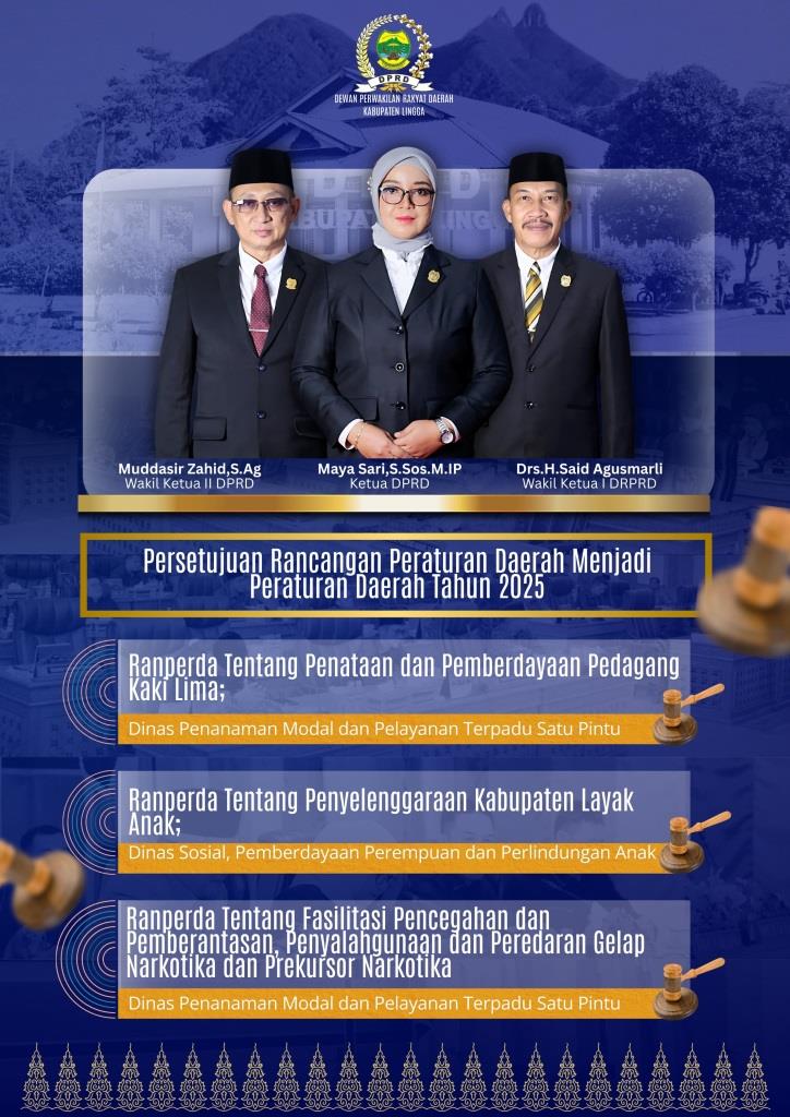 Dewan Perwakilan Rakyat Daerah (DPRD) Kabupaten Lingga, Provinsi Kepulauan Riau Mengucapkan Selamat Atas Persetujuan RANPERDA menjadi PERDA Kabupaten Lingga Tahun 2025 Oleh DPRD Kabupaten Lingga