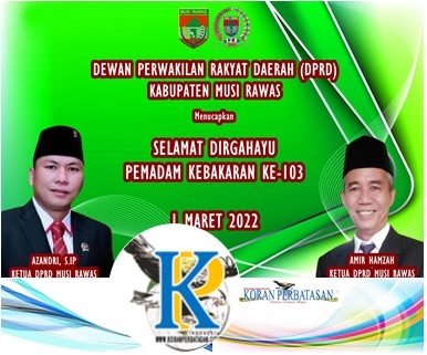 Dewan Perwakilan Rakyat Daerah (DPRD) Kabupaten Musi Rawas Provinsi Sumsel Mengucapkan Dirgahayu Pemadam Kebakaran Ke-103, 01 Maret Tahun 2022.