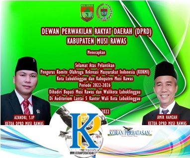 Dewan Perwakilan Rakyat Daerah (DPRD) Kabupaten Musi Rawas Mengucapkan Selamat Atas Pelantikan Pengurus Kormi Kota Lubuklinggau dan Kabupaten Musi Rawas Provinsi Sumsel Periode 2022-2026.