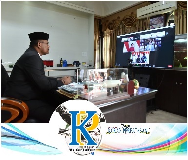 Pj. Gubernur Kalsel Safrizal ZA saat mengikuti Sidang Tahunan MPR-RI secara virtual, Senin, 16 Agustus 2021.