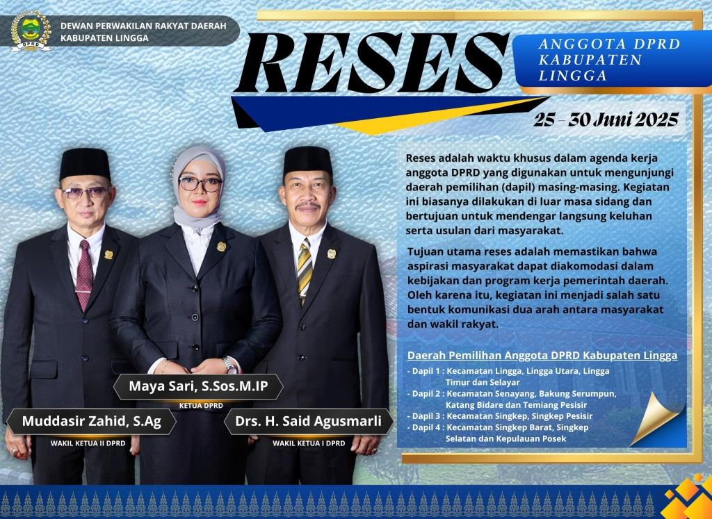 Dewan Perwakilan Rakyat Daerah (DPRD) Kabupaten Lingga, Provinsi Kepulauan Riau Menyampaikan Himbauan Program Kegiatan Reses Anggota DPRD Kabupaten Lingga Tahun Anggaran 2025.