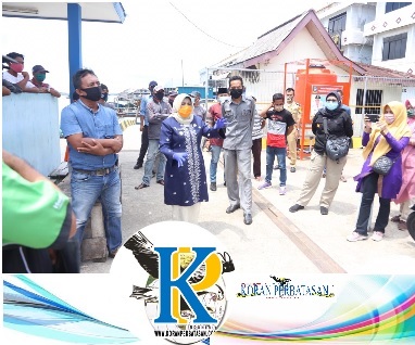 Plt. Wali Kota Tanjungpinang, Hj. Rahma, S.IP terlihat memberikan arahan terkait pembagian sembako muruh yang abaikan protokol kesehatan Covid-19