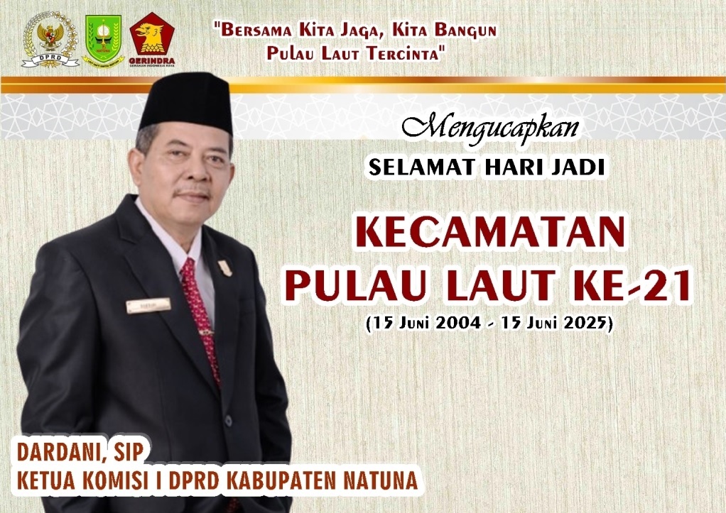 Ketua Komisi I Dewan Perwakilan Rakyat Daerah (DPRD) Kabupaten Natuna Provinsi Kepulauan Riau (Kepri) Dardani, SIP Mengucapkan Selamat Hari Jadi Kecamatan Pulau Laut ke-21 (15 Juni 2004 – 15 Juni 2025).