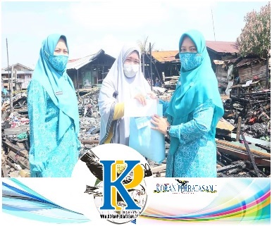 BANJARMASIN – Ketua TP PKK Kota Banjarmasin, Hj. Siti Wasilah memberikan bantuan kepada warga Gangg Agustina yang pekan lalu menjadi korban musibah kebakaran. Kegiatan tersebut berlangsung di Kelurahan Alalak Selatan RT 01 Gang Agustina Kecamatan Banjarmasin Utara, Senin, 23 Agustus 2021.
