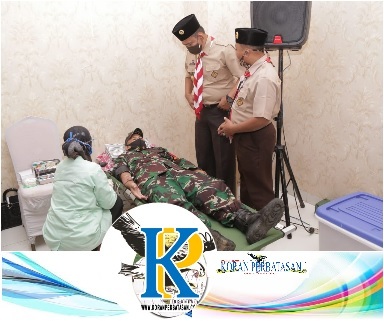 PRINGSEWU (KP),- Gerakan Pramuka Kwarcab Pringsewu bekerjasama dengan Dinas Kesehatan, RSUD, Polres, Kodim 0424, serta Urbanstyle by Frontone Hotel Pringsewu menggelar Donor Darah.