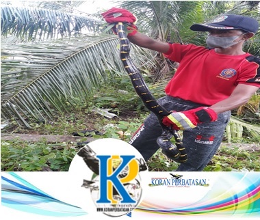 NATUNA – Kepala Sesi Kedaruratan, Logistik, Rehabilitasi dan Rekonstruksi, Bidang Penanggulangan Bencana, Dinas Pemadam Kebakaran Kabupaten Natuna, Elkadar Lismana, SAP, M.Si menyebutkan seekor Ular Cincin Emas dengan ukuran melebihi satu setengah meter, ditemukan Anggota Pangkalan TNI AL di atas pohon kawasan Mako Lanal Ranai Natuna, Kelurahan Batu Hitam, Kecamatan Bunguran Timur, Selasa, 07 Desember 2021 pagi.