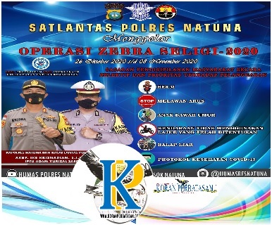 NATUNA (KP),- Kapolres Natuna AKBP Ike Krisnadian, S.I.K., M.Si melalui Kasatlantas Polres Natuna mengatakan, Polres Natuna Polda Kepri akan melaksanakan Operasi Zebra Seligi 2020.