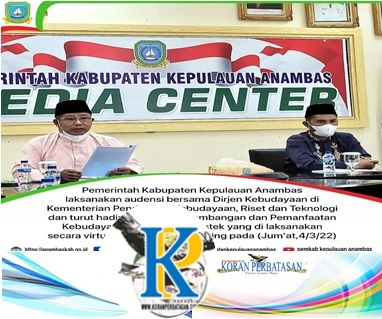 ANAMBAS – Pemerintah Kabupaten Kepulauan Anambas (Anambas) melakukan audiensi bersama Dirjen Kebudayaan di Kementerian Pendidikan, Kebudayaan, Riset dan Teknologi secara virtual melalui zoom meeting, Jum’at, 04 Maret 2022.