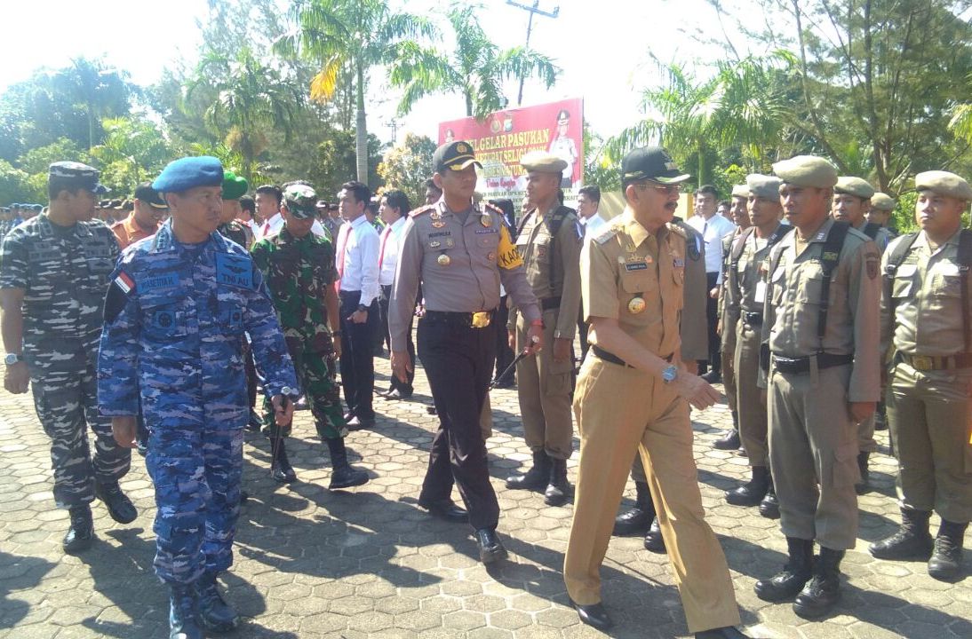 Natuna, (KP), – Bupati Kabupaten Natuna, Drs. H. Abdul Hamid Rizal, M.Si memimpin apel gelar pasukan operasi ketupat seligi. Apel tersebut diselenggarakan oleh Polres Natuna dalam rangka pengamanan pasukan menyambut datangnya hari Raya Idul Fitri 1439 Hijriah. Apel yang berlangsung, Rabu (06/06/2018) pagi di halaman Mapolres Natuna itu, disaksikan langsung oleh Danlanud, Dandim 0318 Natuna, dan Danlanal Ranai.