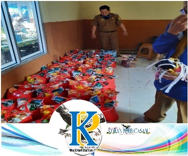 TANGGAMUS (KP),- Petugas Pasar Pangkul Kecamatan Wonosobo Kabupaten Tanggamus, Selasa, 05 April 2020 ikut terlibat mebagikan sekitar 250 paket sembako dan masker kepada para pedagang kecil, kuli angkut, hingga juru parkir.