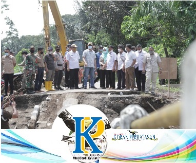 OKU (KP),- Pejabat Sementara (Pjs) Bupati Kabupaten OKU M. Zaki Aslam, S.IP, M.Si meninjau Jembatan Putus dan Pembuatan Jembatan Alternatif di Desa Lubuk Batang Lama, Kecamatan Lubuk Batang, Rabu, 28 Oktober 2020.