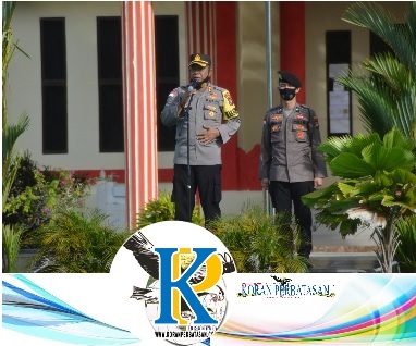Wakapolres Natuna AKBP Wisnu Edhi Sadono, SH menyampaikan bahwa apel ini merupakan bukti komitmen Polri guna mendukung program pemerintah dalam rangka melaksanakan upaya menekan penyebaran Covid-19.
