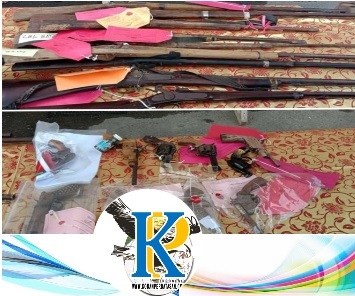 “Dari 18 Senpi ini, 3 Senpi kita dapat dari tiga pelaku TO dan non TO berupa 2 Senpi jenis revolver dan satu jenis kelocok. Sementara sisanya hasil serahan dari masyarakat, berupa 8 Senpi jenis laras panjang dan 7 Senpi jenis laras pendek beserta 2 amunisi jenis kaliber 0,38 dan 9 ml. Jadi totalnya secara keseluruhan ada 18 pucuk Senpi yang kita amankan saat ini dengan 3 tersangka,” papar Kapolres.