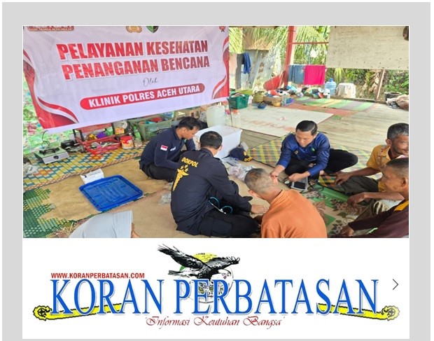 2. Desa Alue Ie Puteh, Aceh Utara: Klinik Pratama Polres Aceh Utara bersama Tim BKO Polda Jawa Timur memberikan pelayanan kepada 186 warga. Penyakit yang banyak ditemui antara lain dermatitis, ISPA, hipertensi, cephalgia, dan diabetes melitus. Ipda dr. Nuno Febrian Probosutiksna, dokter penanggung jawab tim, menegaskan kegiatan ini sebagai wujud kehadiran negara. “Kami tidak hanya memberikan pengobatan, tetapi juga edukasi kesehatan agar masyarakat dapat menjaga kondisi tubuhnya di tengah keterbatasan,” ujarnya.