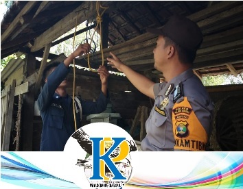 TULANG BAWANG (KP),- Polsek Lambu Kibang melakukan evakuasi dan olah TKP (Tempat Kejadian Perkara) peristiwa penemuan mayat seorang kakek yang tergantung di gudang belakang rumah. Kapolsek Lambu Kibang Iptu Abdul Malik mewakili Kapolres Tulang Bawang AKBP Syaiful Wahyudi, SIK, MH mengatakan, peristiwa tersebut terjadi hari Selasa (30/07/2019), sekira pukul 14.45 WIB, di Tiyuh/Kampung Indraloka Jaya.