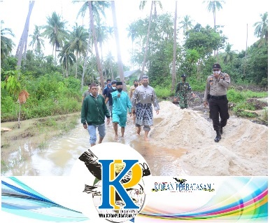 LINGGA (KP),- Wakil Bupati Kabupaten lingga M. Nizar yang didampingi Camat Selayar Muhammad Saman, lakukan pemantauan dan melihat langsung ke rumah warga yang terdampak oleh luapan air bekas pengoperasian PT pasir di Kampung Teluk Mengkerang Desa Pantai Harapan Kecamatan Selayar Kabupaten Lingga, pada Jum’at, 26 Juni 2020 pukul 11.00 Wib.