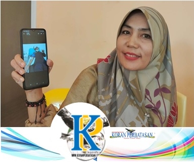 Ketua Yayasan Kopdar Kepri Indonesia, Suryani menunjukan foto pihak yang dirugikan.