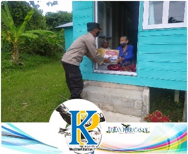 Kapolres Natuna melalui Sat Binmas Polres Natuna menyerahkan bantuan paket sembako kepada salah satu warga di Kelurahan Bandarsyah